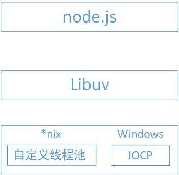 为了兼容Windows和Linux平台,node提供了libuv作为抽象封装层,使得所有平台兼容性的判断都有这一层来完成,并保证上层的node与下层的自定义线程池与IOCP之间各自独立。