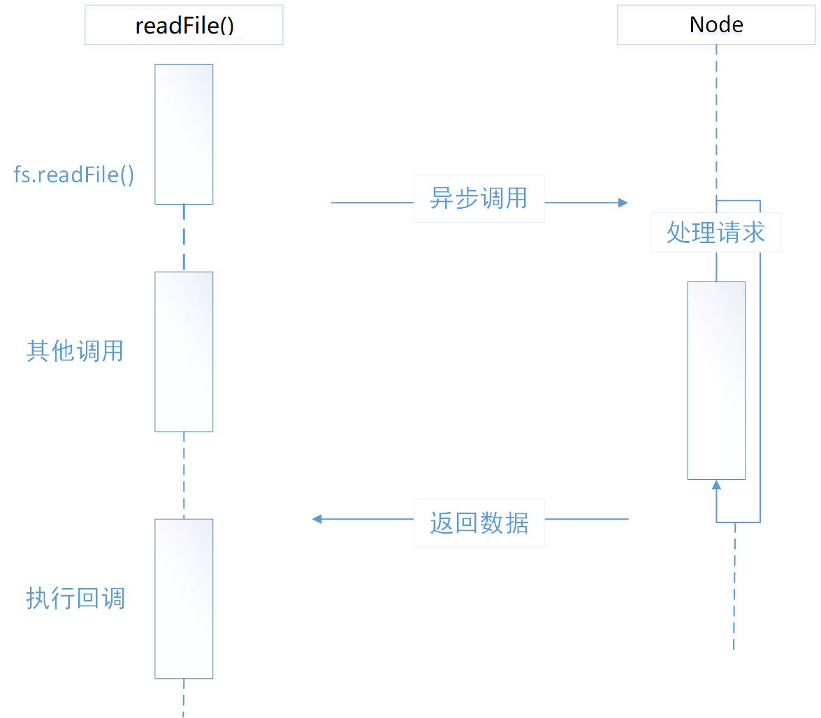 至此,JavaScript调用立即返回,由JavaScript层面发起的异步调用的第一阶段就此结束,JavaScript线程可以继续执行当前任务的后续操作。而当前的I/O操作在线程池中等待执行,不管它是否阻塞I/O,都不会影响JavaScript线程的后续执行,因而达到了异步的目的。