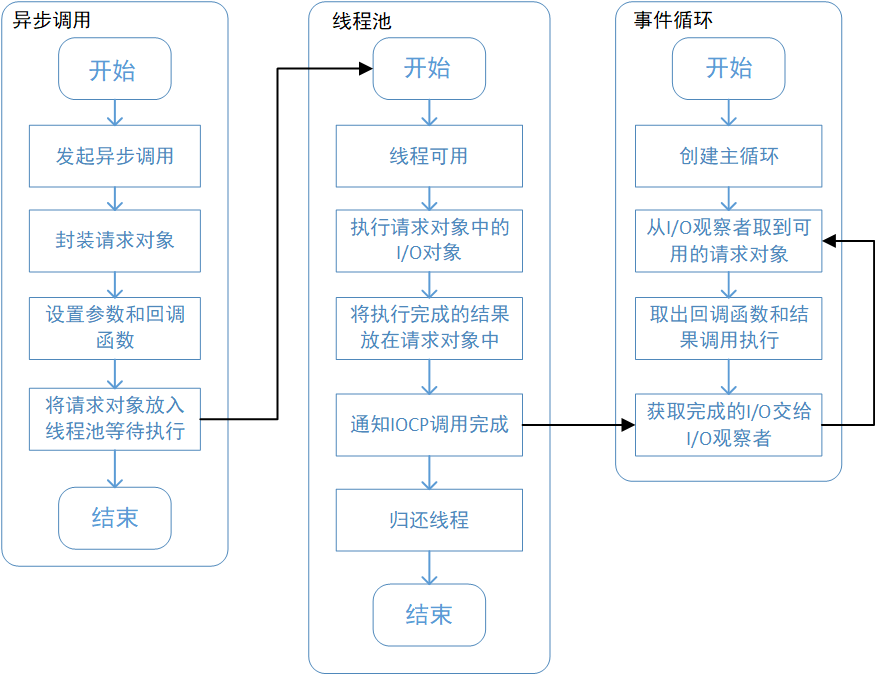 node的异步调用模型参考了Windows下的IOCP的异步I/O模型: